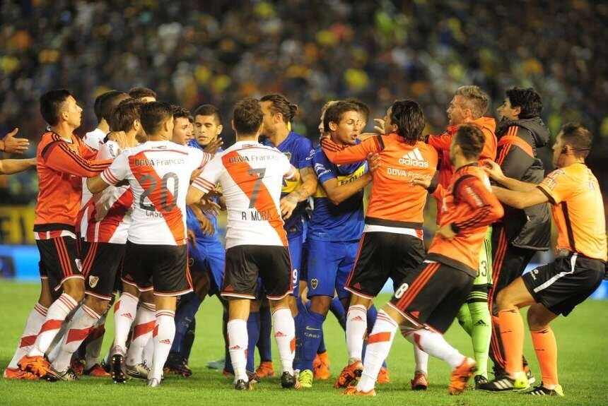 Patadas, agresiones y hasta cinco rojas en el Clásico argentino. El pique entre Maidana y 'El Apache' Tévez desató una batalla campal.