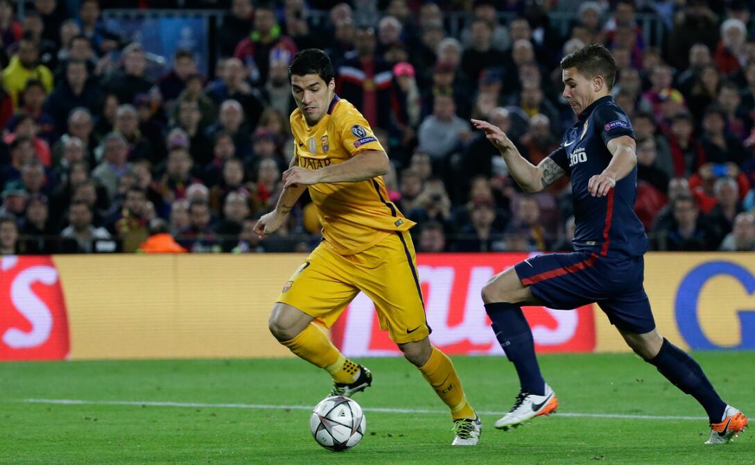 El FC Barcelona ganó este martes 2-1 al Atlético de Madrid, con un doblete del uruguayo Luis Suárez, en el partido de ida de los cuartos de final de la Liga de Campeones, poniendo un pie en las semifinales del torneo continental.