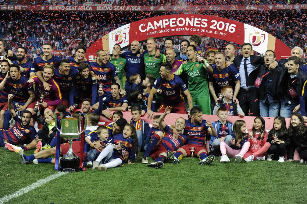 El FC Barcelona ganó este domingo la Copa del Rey al vencer 2-0 en la prórroga de la final al Sevilla en un sufrido y accidentado partido, por las expulsiones, en el estadio Vicente Calderón de Madrid, una semana después de haberse proclamado campeón de la Liga española.