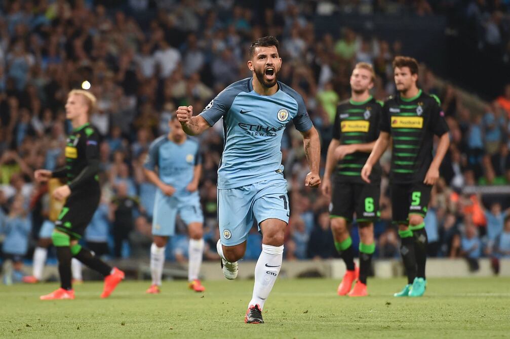 El Manchester City inició la Liga de Campeones con un triunfo 4-0 ante el Borussia Moenchengladbach gracias a un triplete del argentino Sergio Agüero, este miércoles en el Etihad Stadium en un partido previsto para el martes que se pospuso por las fuertes lluvias en la ciudad inglesa.