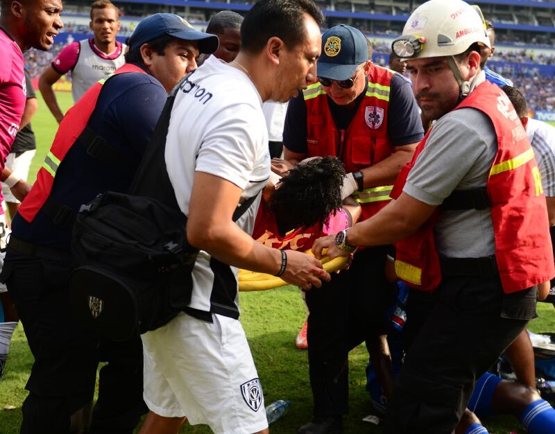 Orejuela recibió un fuerte cabezazo de Osbaldo Lastra mientras disputaban el balón una jugada, en el partido de ayer que ganó Emelec a Independiente.
