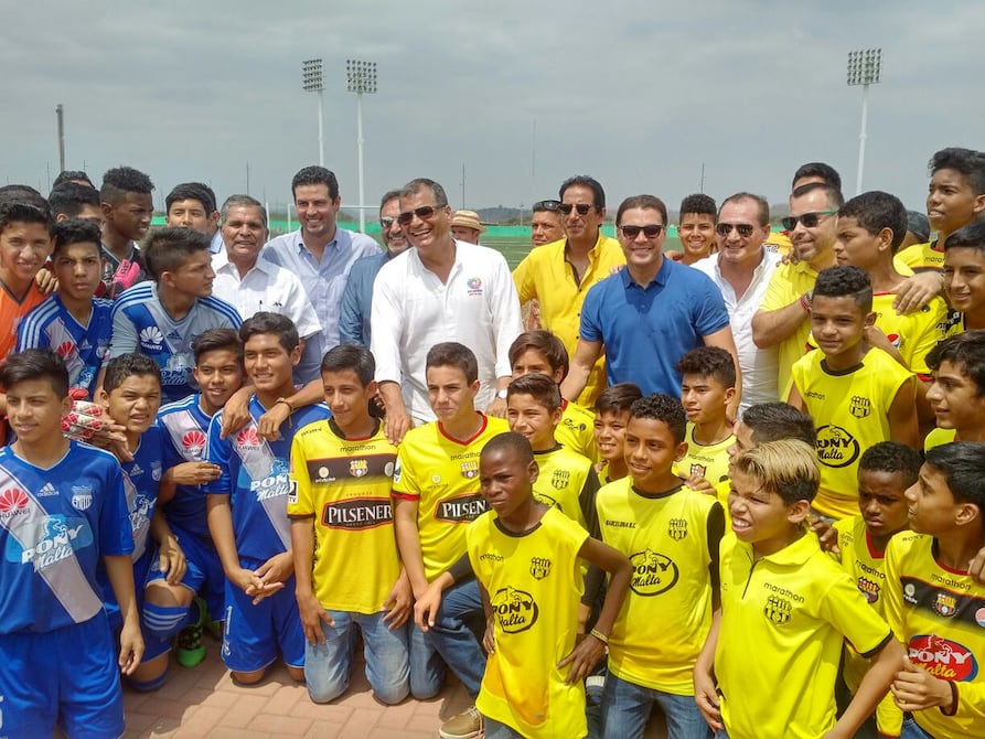El presidente Rafael Correa inauguró la mañana de este martes las escuelas del Astillero en el Parque Samanes, con la presencia de los principales dirigentes de Barcelona y Emelec.