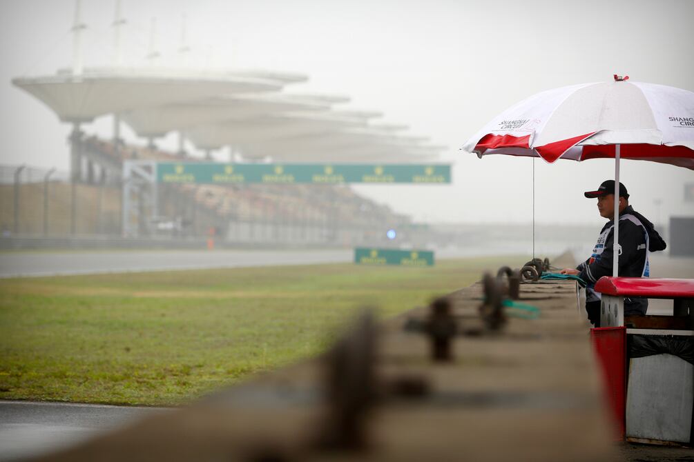 Cuando Lewis Hamilton salió por fin del garaje en medio de la lluvia y la niebla de este viernes, no fue para sacar su Mercedes para una vuelta de prácticas en el circuito internacional de Shanghai, sino para firmar gorras para lanzar a los espectadores.