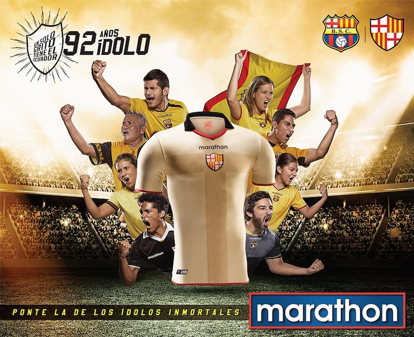 Marathon Sports presentó la camiseta oficial que usará Barcelona Sporting Club durante todo el mes de mayo por conmemorar su aniversario 92 de fundación.