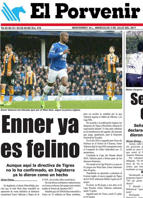 La experiencia de Enner Valencia en Europa llegó a su fin al concretarse su traspaso a los Tigres de la Universidad Autónoma de Nuevo León, lo que representa el retorno del delantero ecuatoriano a México, desde donde salió rumbo a Inglaterra en el 2014.