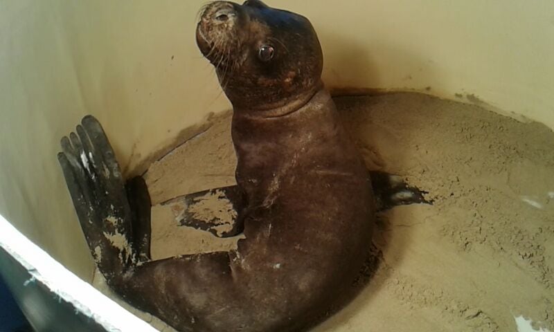Elementos de la Policía llegaron al lugar y con una soga y sábanas sacaron al lobo marino de la orilla, y lo subieron a una camioneta de la institución, indicaron testigos.