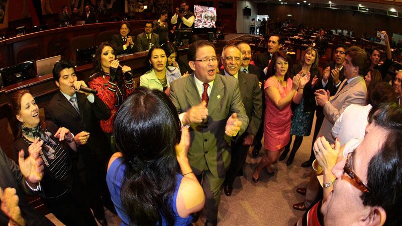 Por primera vez, sin importar la postura política, asambleístas de oposición y del oficialismo transformaron el Pleno en una pista de baile, mientras otros no paraban de posar para las fotos del recuerdo.