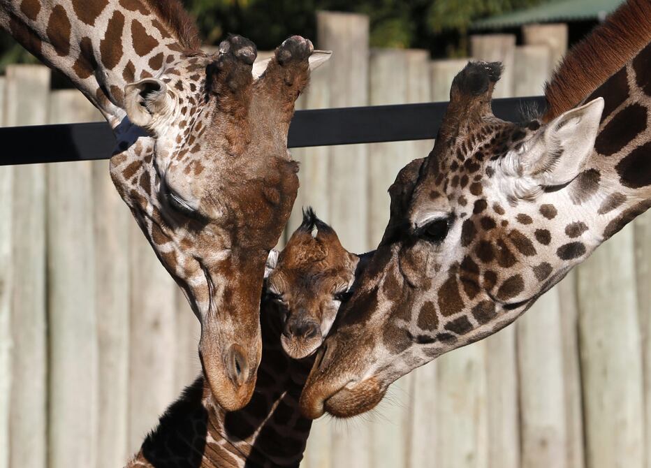 La jirafita nació por parto natural después de 15 meses de gestación y es hijo de Jacky, una hembra de 11 años y de Buddy, un macho de seis, que fue llevado desde Chile.