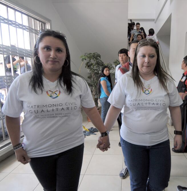 Intentan casarse. En el Registro Civil del centro de Quito dos mujeres se presentaron para formalizar su relación con el matrimonio civil. Las autoridades de la Sala de Matrimonio tomaron sus documentos para verificar la pertinencia o no del procedimiento; el trámite dura cuatro días y les pidieron que volvieran este viernes, a las 10:00.