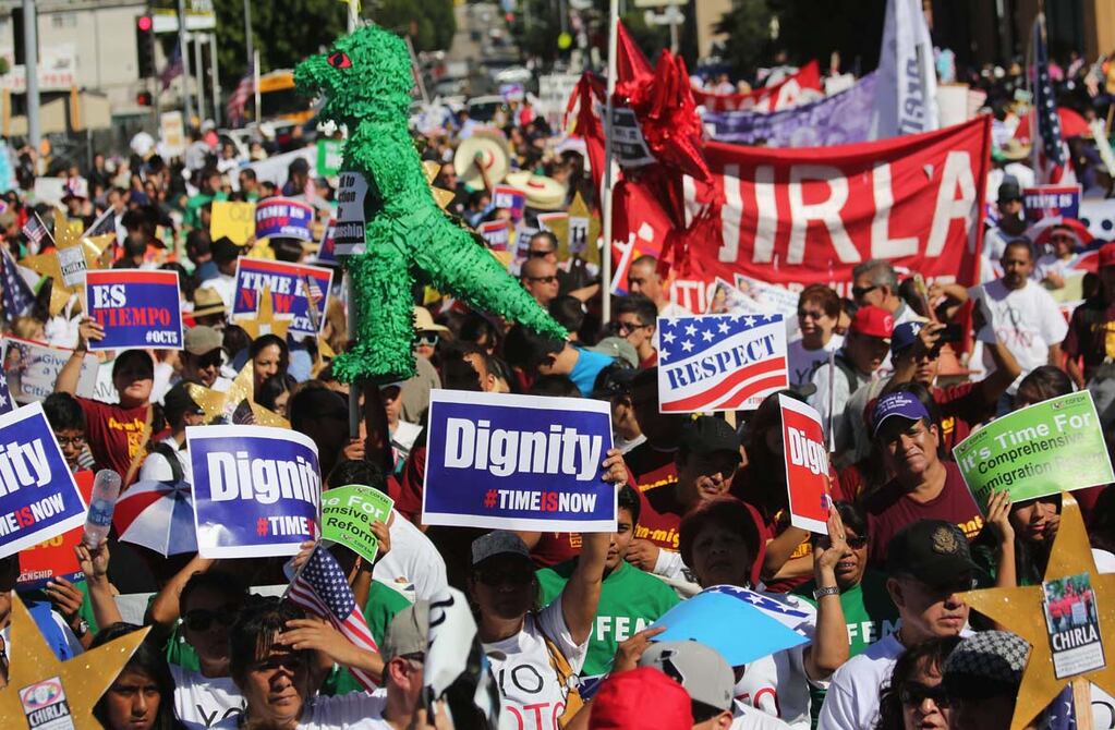 Cerca de un millar de manifestantes marcharon este sábado en Los Ángeles para pedir una pronta aprobación de una reforma migratoria, que incluya una vía a la ciudadanía a los 11 millones de indocumentados que viven en Estados Unidos.