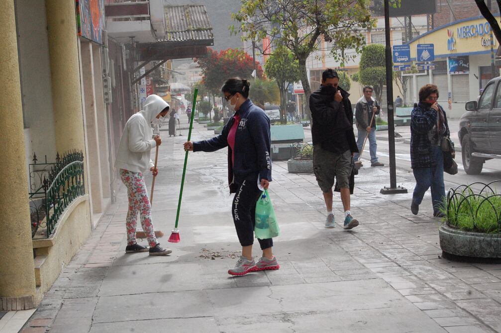 Desde antes de las 06:00 de hoy los baneños salieron con escobas, palas y fundas para recoger la ceniza que arrojó en la madrugada el volcán Tungurahua, en proceso eruptivo desde hace catorce años, que por la dirección del viento se depositó en este cantón.