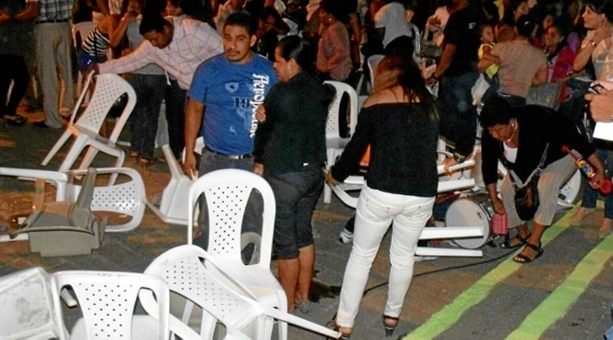Mientras se realizaba la elección de la reina de San Vicente, en la Plaza Cívica de esa localidad, en Manabí, juegos pirotécnicos explotaron en dos ocasiones sorpresivamente cerca del escenario, donde había decenas de personas.