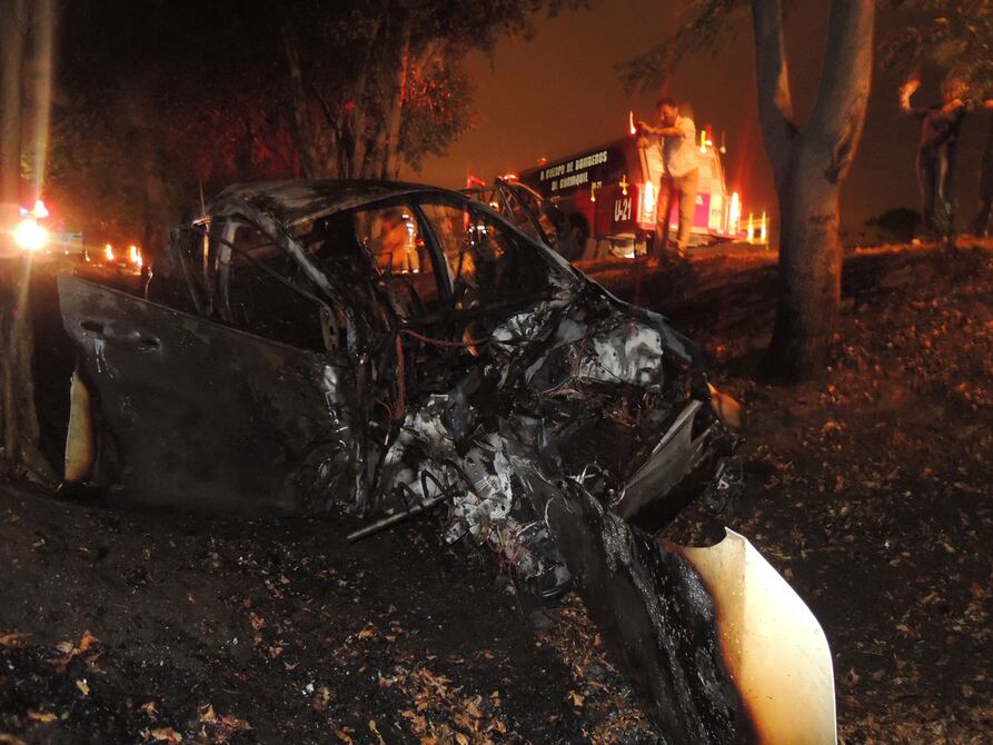 Un accidente de tránsito, provocado presuntamente por el exceso de velocidad, dejó dos personas heridas y un vehículo totalmente quemado.