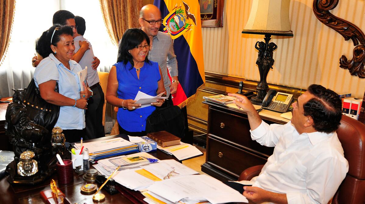 El reelecto alcalde de Guayaquil retornó ayer a su despacho, tras los comicios del domingo.