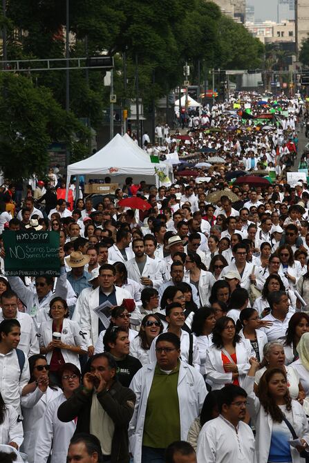 Al grito de "Somos médicos, no somos dioses ni criminales", con las redes sociales como aliadas y vestidos con batas blancas, miles de médicos se manifestaron el domingo en México en solidaridad con 16 colegas de profesión enjuiciados por una negligencia médica que, según la acusación, llevó a la muerte de un adolescente en el estado occidental de Jalisco.