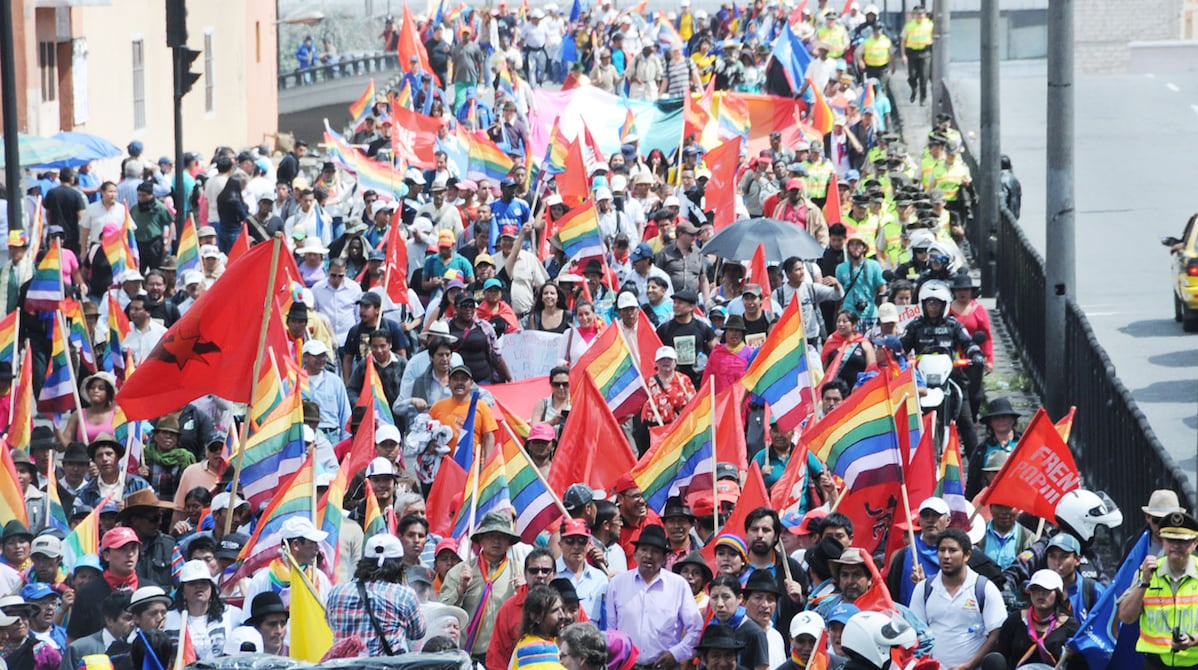 El movimiento indígena cumplió ayer el último tramo de su caminata, desde el extremo sur de Quito hasta el parque de El Arbolito, situado a dos cuadras de la Asamblea Nacional. Llevaban doce días de periplo, que comenzó en El Pangui (Zamora Chinchipe).