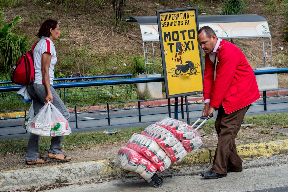 La escasez de rubros básicos en Venezuela provoca largas colas en supermercados y farmacias, lo que aunado a la crisis económica ha empujado a algunos venezolanos a convertirse en 'empleados por encargo' que compran alimentos y otros bienes para particulares.