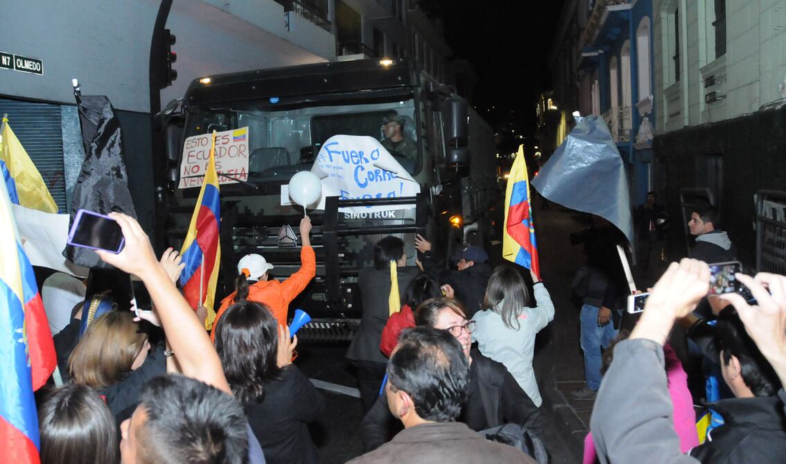 Flores, pancartas, banderas, pitos, globos, cornetas y gritos de “Fuera Correa, fuera” matizaron la concentración que ayer opositores al Gobierno, varios vestidos de negro, realizaron en la Tribuna de Los Shyris y a la que se sumó el alcalde de Quito, Mauricio Rodas.