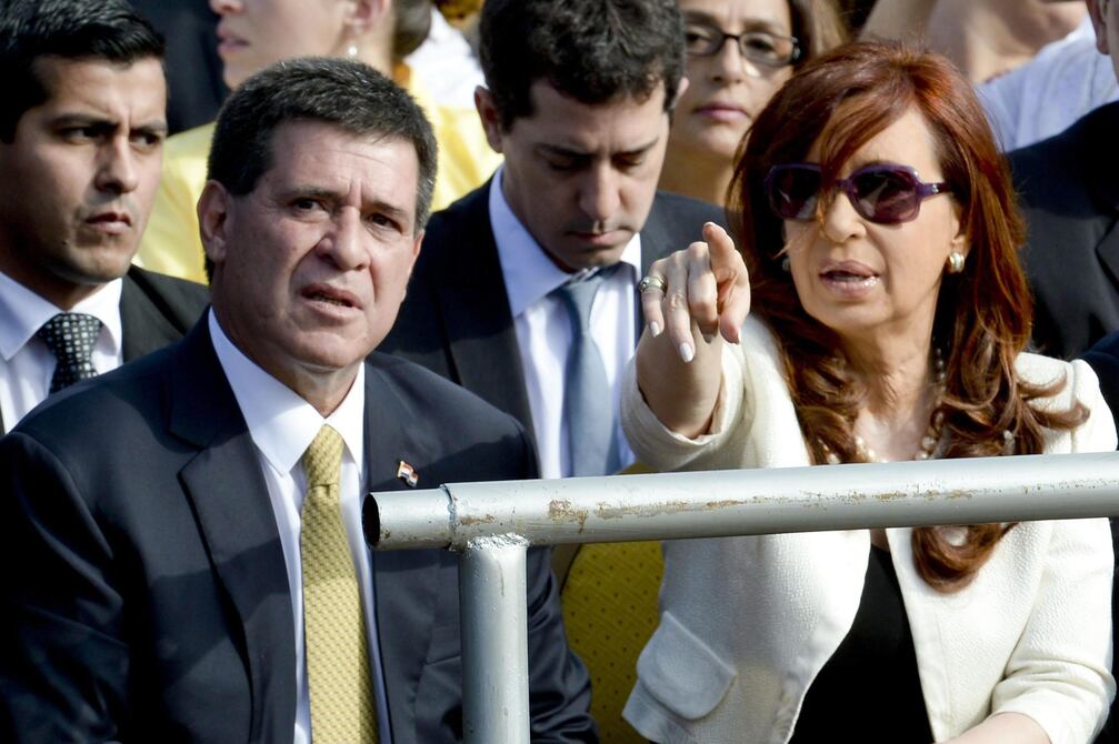 Fernández tuvo ese gesto tras subir al altar junto a su homólogo paraguayo, Horacio Cartes, otro de los asistentes a esa liturgia, a la que asistieron decenas de miles de personas.