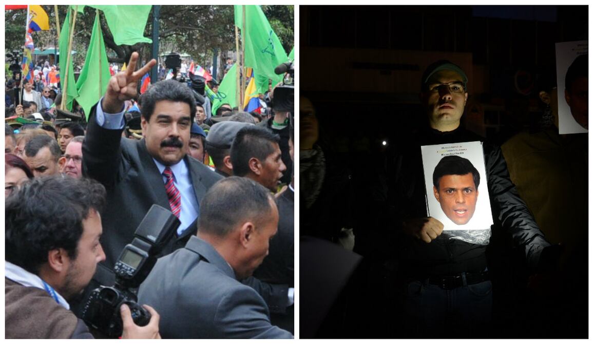 En la Plaza Grande Maduro fue ovacionado, pero en la Embajada de Venezuela decenas de personas se congregaron para rechazar su presencia en la capital. "Fuera Maduro"y "Leopoldo amigo, Ecuador está contigo".