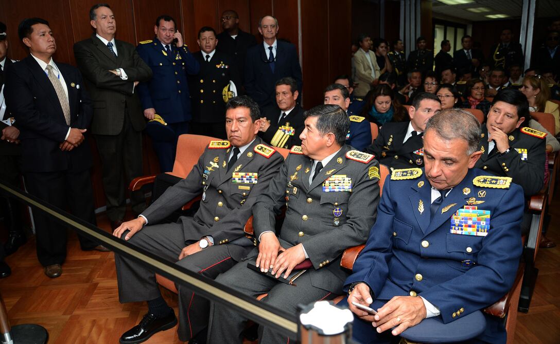 La presencia de la actual cúpula de las Fuerzas Armadas y de oficiales militares en servicio pasivo sorprendió ayer en una de las salas de la Corte Nacional de Justicia (CNJ), en donde se preveía que se iniciara la etapa de juicio en el primer proceso por supuestos delitos de lesa humanidad que se sigue en el país.