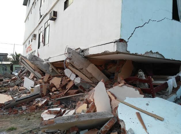 Los cuerpos de dos personas yacen esta mañana bajo el edificio del hotel Shait en la parroquia Canoa, perteneciente a San Vicente.