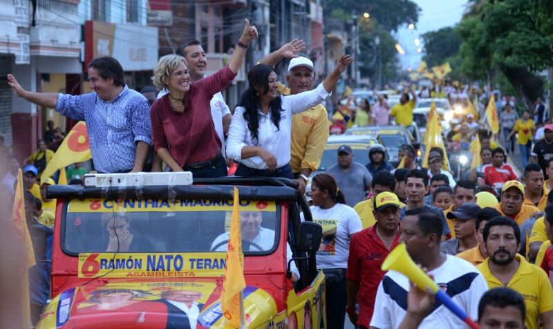 Su ingreso y salida de la explanada donde expuso sus ofertas de campaña fueron atropellados. Cynthia Viteri, candidata del PSC, avanzó con complicaciones debido a la cantidad de personas que se desesperaban por estrecharle la mano, abrazarla o tomarle una foto desde su celular.