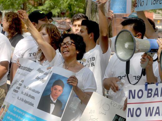 Un ecuatoriano de 19 años que fue detenido por las autoridades migratorias estadounidenses horas antes de su baile de graduación. Se encuentra ahora en una cárcel en espera a ser deportado, mientras su inmigrantes y allegados al joven protestaban fuera de estas instalaciones por su captura.
