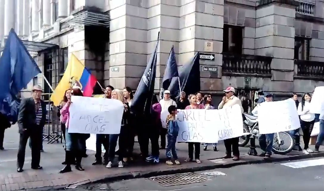 Con las expresiones "Fuera Glas, fuera", un grupo de manifestantes, de la Coalición de Organizaciones Sociales se concentraron esta mañana en los alrededores de la Vicepresidencia.