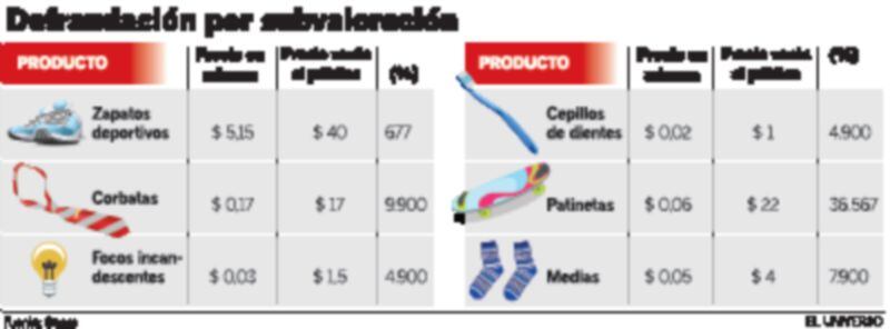 Entre 677% y 36.567% de ganancia han registrado ciertas importaciones de productos como zapatos deportivos, corbatas, focos incandescentes, cepillos de dientes, patinetas, medias, y otros. Este tipo de rentabilidad solo es posible a través de un sistema de defraudación a la hora de declarar los productos importados.