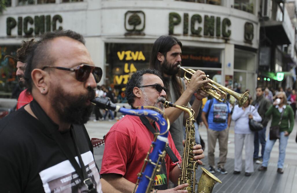 En pleno cruce de dos de las calles más bulliciosas del centro de Buenos Aires, un grupo de músicos callejeros rompió el fin de semana la rutina de los porteños, mientras reclama una legislación que proteja la cultura en el espacio público. Ellos quieren “que sea accesible” para todos los ciudadanos.