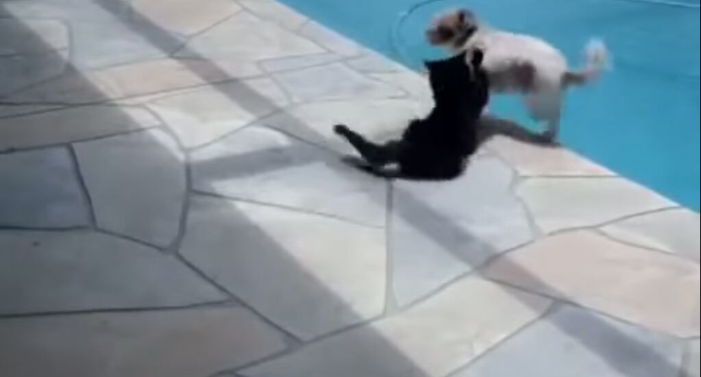 Normalmente los gatos huyen de los perros y son quienes tienen las de perder; sin embargo, está circulando un video donde un felino cobra venganza.