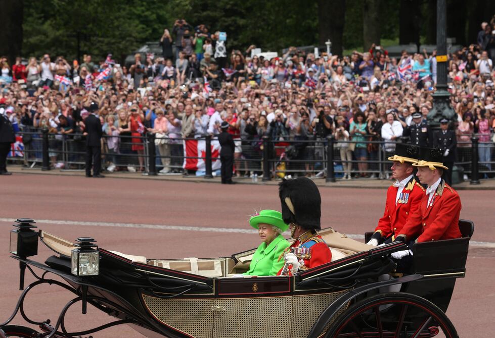 Acompañada de su esposo, Felipe de Edimburgo, que este viernes cumplió 95 años, la reina saludó desde su carroza a la multitud reunida en el Mall, la larga avenida que nace en el palacio de Buckingham.