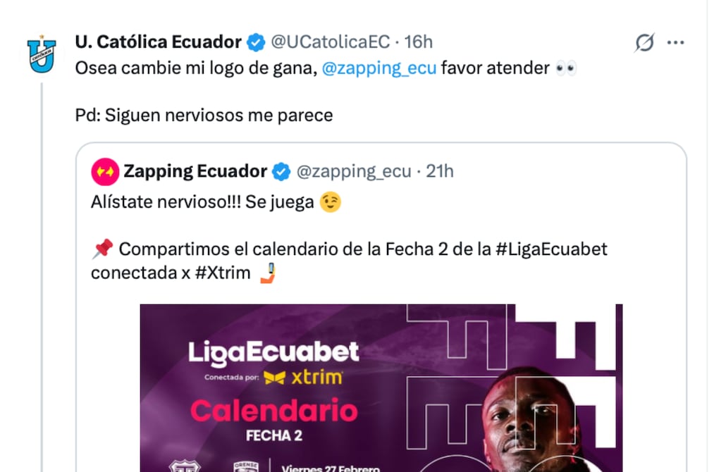 Todo comenzó cuando el Community manager de Zapping Ecuador publicó en X el calendario de la Fecha 2 con un mensaje que no pasó desapercibido: