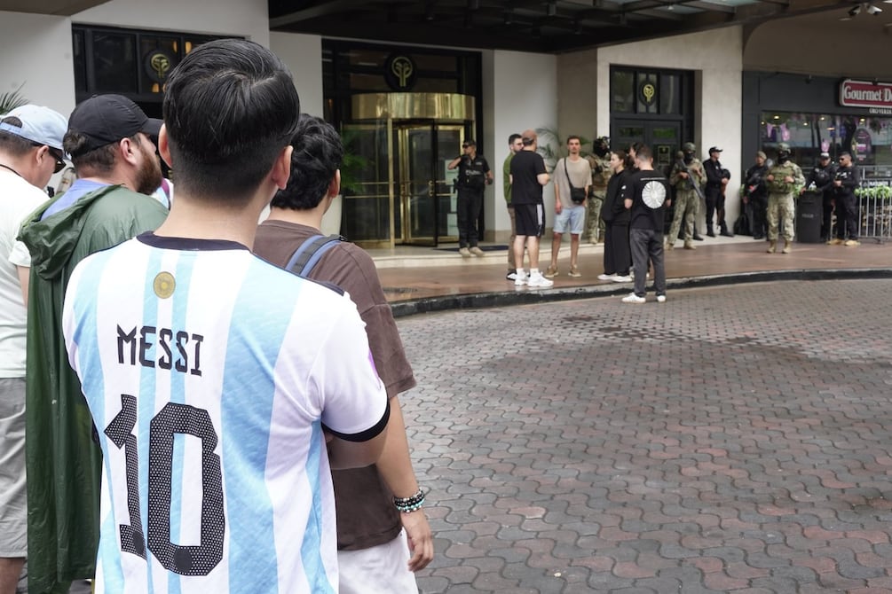 Una ligera garúa recibió a los fanáticos que se dieron cita desde muy temprano en los exteriores del hotel Oro Verde, en Guayaquil, a la espera de poder observar a los integrantes del Inter Miami, sobre todo a Lionel Messi.