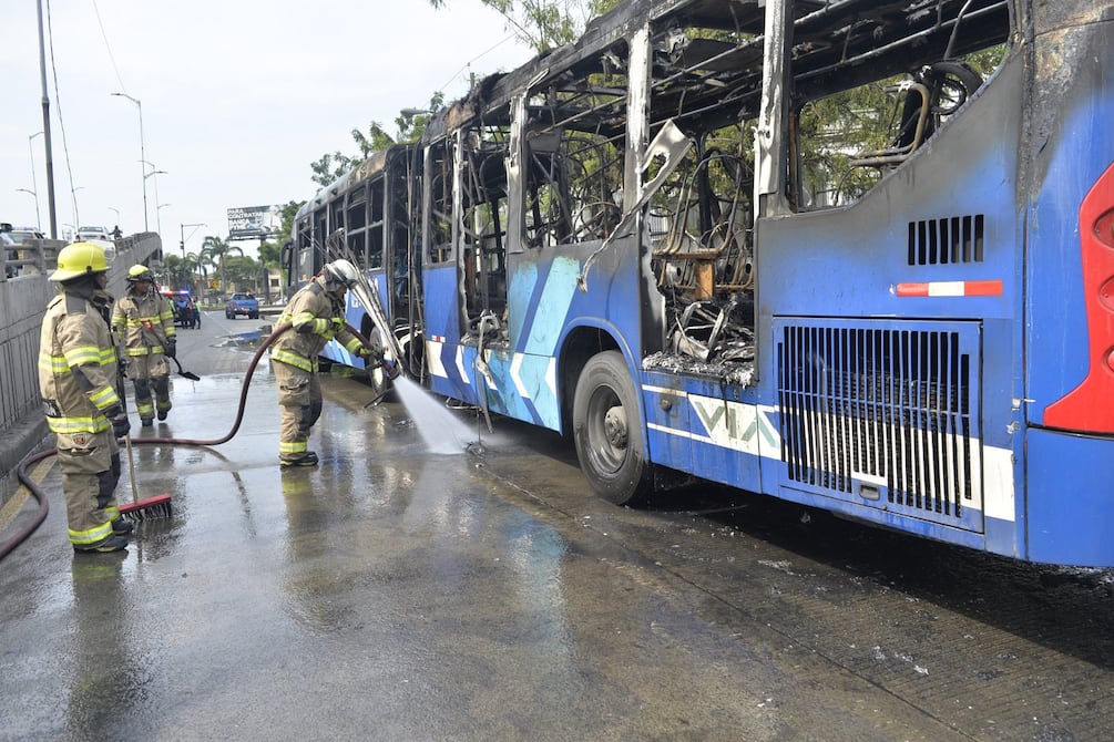 Un articulado del sistema Metrovía se incineró la tarde este sábado, 21 de marzo.