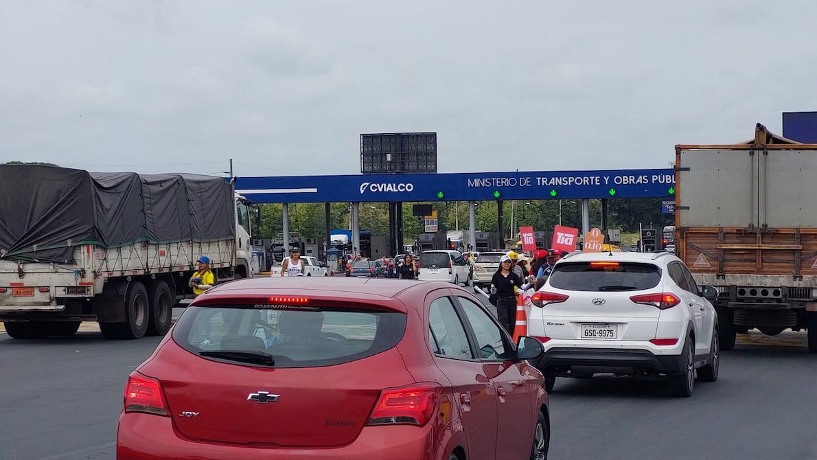 Hasta las 09:00 de este jueves se observaron filas de vehículos en el peaje de Chongón. Aunque los carriles de salida estaban llenos, había fluidez en el tránsito.