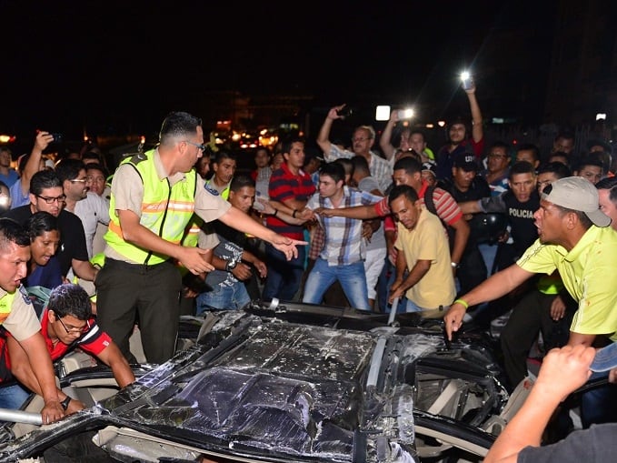 En medio de la oscuridad, puesto que la ciudad quedó sin suministro eléctrico, hubo ciudadanos que se acercaron a la escena para intentar rescatar a dos ocupantes del auto. Una pareja quedó atrapada, el esposo murió y la mujer resultó herida.