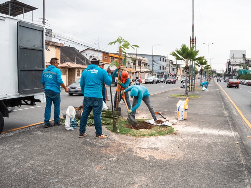 Las intervenciones se desarrollan en corredores viales considerados estratégicos, como las avenidas Felipe Pezo, Del Santuario, Gómez Gault, Juan Tanca Marengo, Rodrigo Chávez y Domingo Comín, donde la cobertura vegetal cumple un papel clave en la regulación del microclima, la reducción de la radiación solar directa y la recuperación del paisaje urbano.