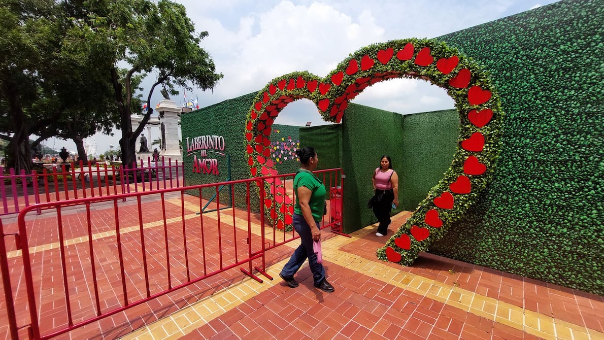 Uno de los puntos con mayor movimiento fue el espacio llamado Laberinto del Amor, ubicado dentro del malecón, junto al Hemiciclo de la Rotonda. Allí ingresaban visitantes que buscaban tomarse fotografías en los distintos escenarios instalados dentro del recorrido.