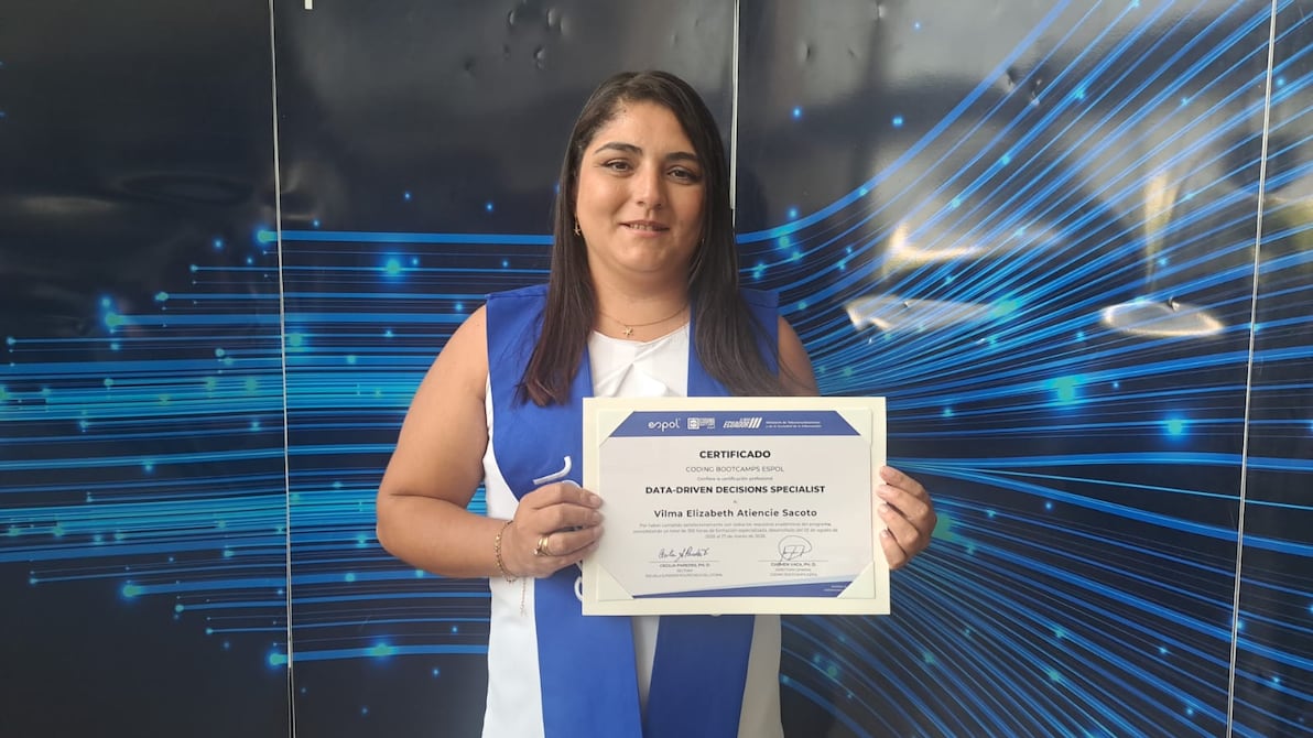 La semana pasada, Atiencie se graduó del Data Foundations Program del Coding Bootcamps Espol, un programa que fue impulsado por el Ministerio de Telecomunicaciones y la Sociedad de la Información (Mintel), que invirtió $ 420.000 en becar a los 221 beneficiarios que durante ocho meses se capacitaron en Excel, SQL, Python, Power BI, inteligencia de negocios, talleres de empleabilidad y asesorías de desarrollo de perfil académico en el mundo laboral.