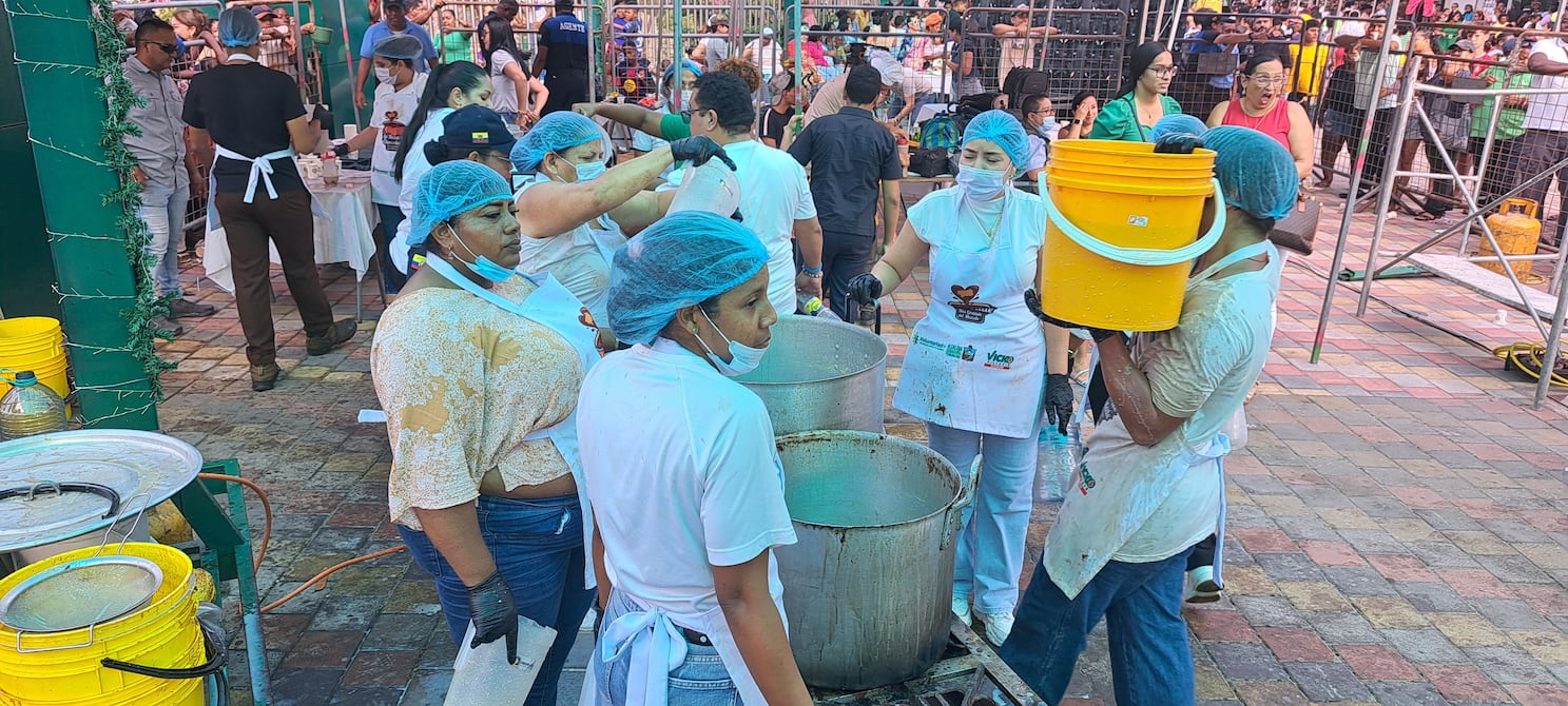 Los asistentes al evento pudieron llevar la bebida en recipientes y botellas plásticas, debido a la gran cantidad preparada.