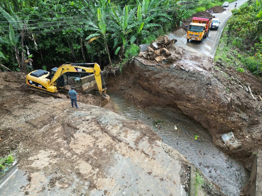 Mientras duran los trabajos, que se prevé que se extiendan entre dos o tres días, los vehículos mantienen circulación por una vía de más de 2 kilómetros, estrecha y lastrada, por el sector de Pangala Bajo.