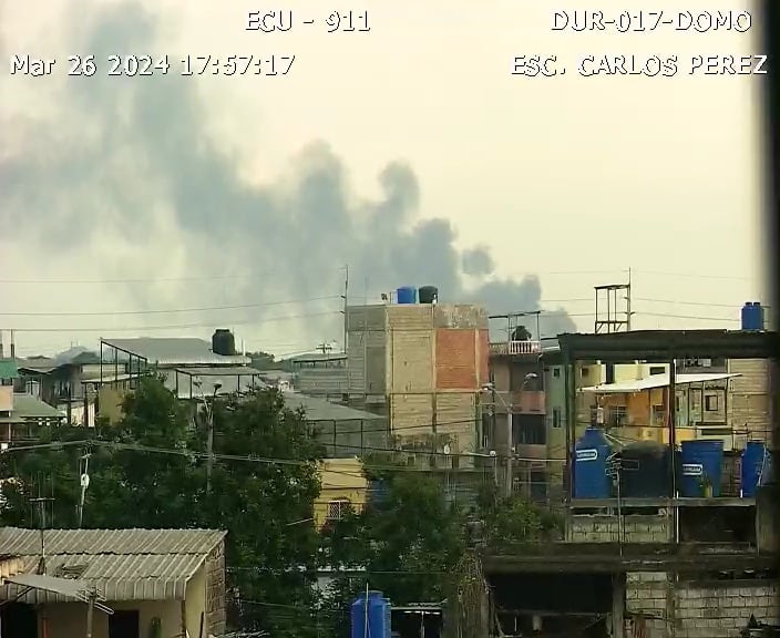 Una gran nube de humo negro alarmó a residentes de zonas cercanas al kilómetro 8 de la vía Durán-Tambo la tarde de este martes, 26 de marzo.