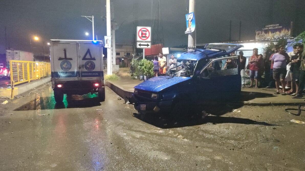 Un tráiler se impactó contra un auto de color azul en el kilómetro 16.5 de la vía a Daule, frente a la Penitenciaría, en el noroeste de Guayaquil, la noche de este martes, 25 de marzo.