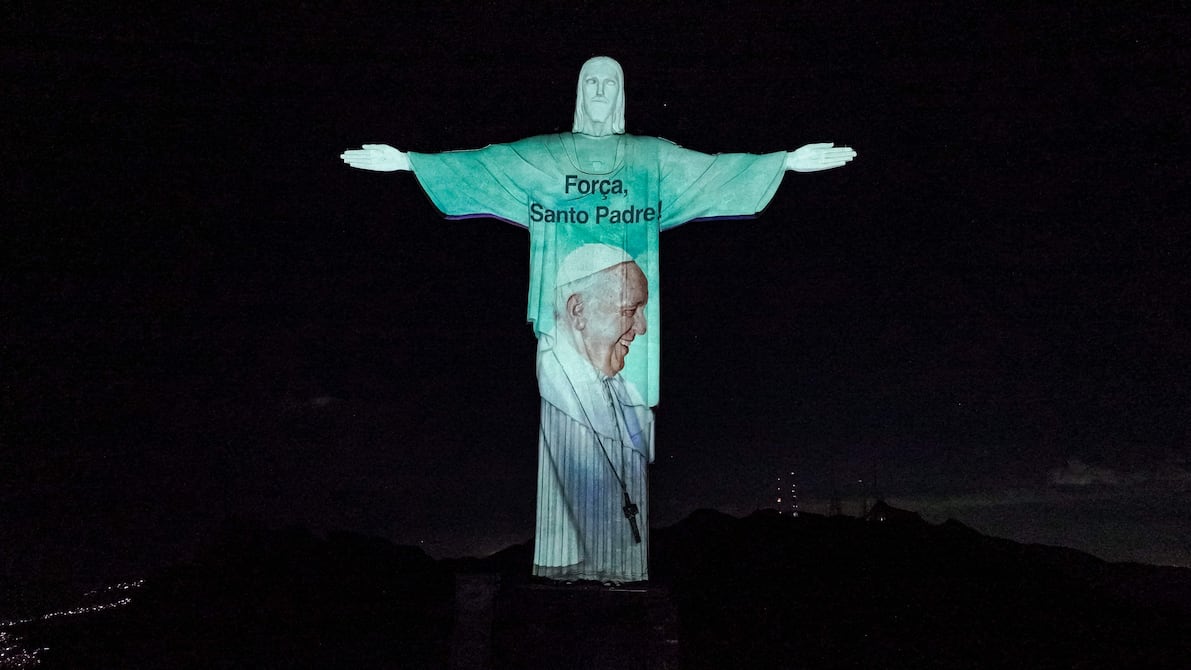 El Cristo Redentor de Río de Janeiro se iluminó este jueves con el rostro del papa Francisco para mandarle un mensaje de “fuerza” y “esperanza” mientras se recupera, tras enlazar dos semanas ingresado por problemas respiratorios.