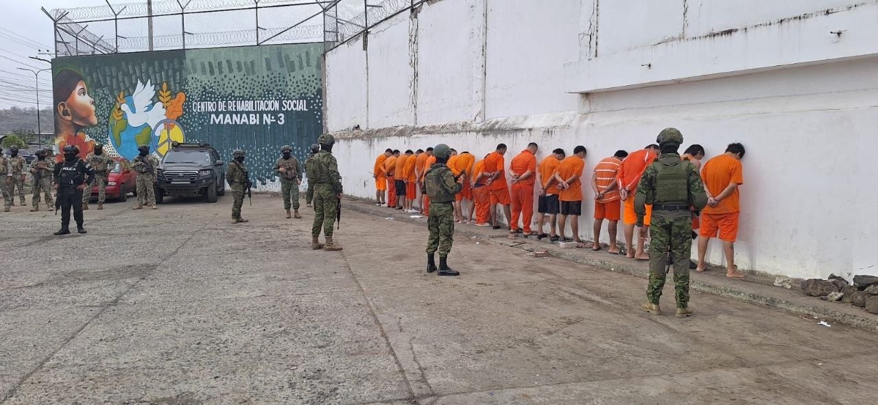 La intervención contó con la seguridad armada de la Brigada de Caballería Mecanizada n.° 3 y la Fuerza de Tarea 21. De los trasladados, 342 internos fueron recluidos en el CPL Manabí n.° 4 (Portoviejo), mientras que 72 reos vinculados al grupo de delincuencia organizada Los Choneros fueron derivados al centro masculino de Sucre, bajo estrictos protocolos de vigilancia.