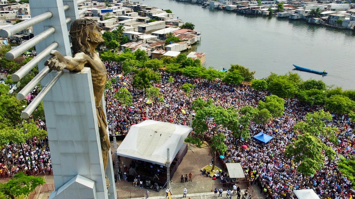 Durante la romería de Cristo del Consuelo la oración colectiva guiada por los sacerdotes fue por la paz en un momento complejo a nivel global. El pedido no fue aislado, coincidió con el que se expresó en la procesión del norte de Guayaquil, de Esmeraldas, Quevedo y otras ciudades.