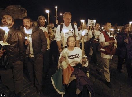 CIUDAD DEL VATICANO.- "¡Qué vergüenza!", "¡Qué vergüenza!", gritaban enfurecidas cerca de 60 víctimas de curas pedófilos al portavoz del Vaticano ayer, cerca de San Pedro, en una marcha contra la falta de transparencia de la Iglesia católica respecto a estos escándalos. La presencia del vocero del Papa, padre Federico Lombardi, quien quería reunirse con los manifestantes, suscitó gritos entre los presentes, en su mayoría personas de más de 50 años y víctimas de abusos sexuales por parte de religiosos.