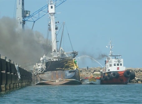Una chispa que cayó sobre un tanque de acetileno (hidrocarburo gaseoso) habría sido la causa de varias explosiones y un incendio que se produjo ayer en el cuarto de máquinas del buque atunero Lautaro, de origen panameño y perteneciente a la compañía Augusta Fishery Corp.